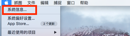 在桌面上,按住option键不放,点击左上角的Apple图标,选择“系统信息”。